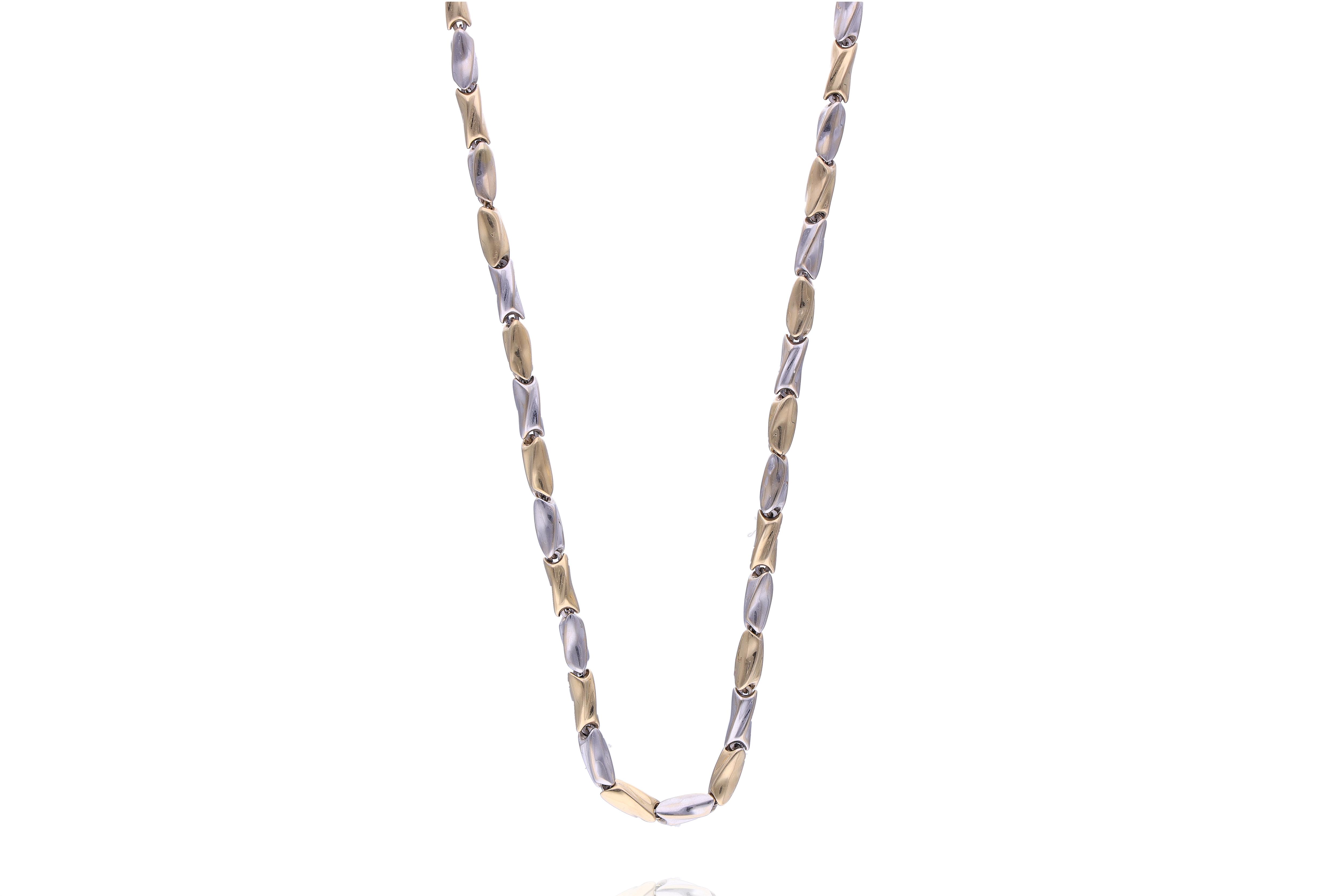 Collana, realizzata in oro bicolore 750, lunghezza 75,5 cm, imperfezioni - Grammi 23,20