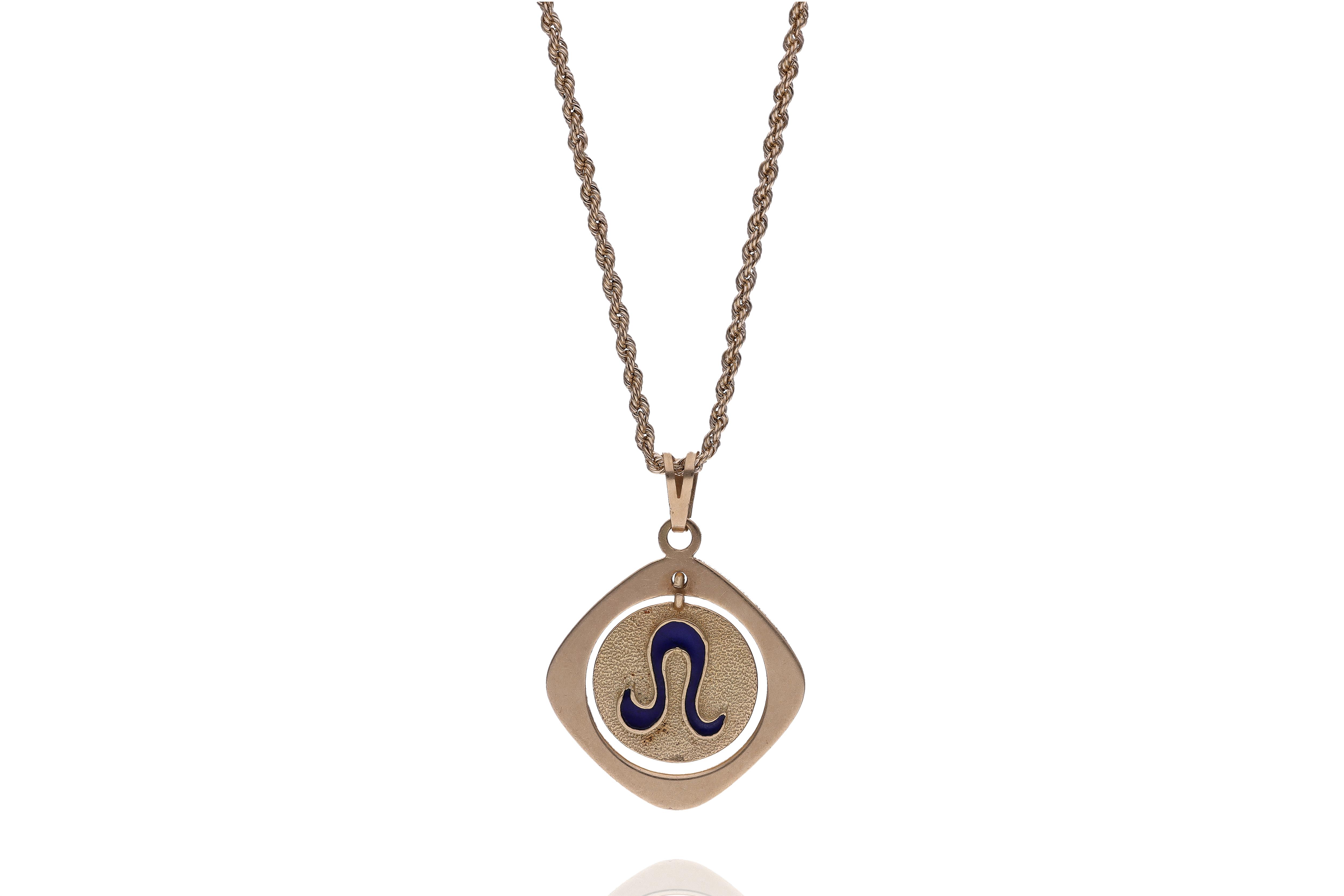 Collana con ciondolo realizzato in oro giallo 750, parti smaltate, lunghezza 45 cm, difetti - Grammi 4,50