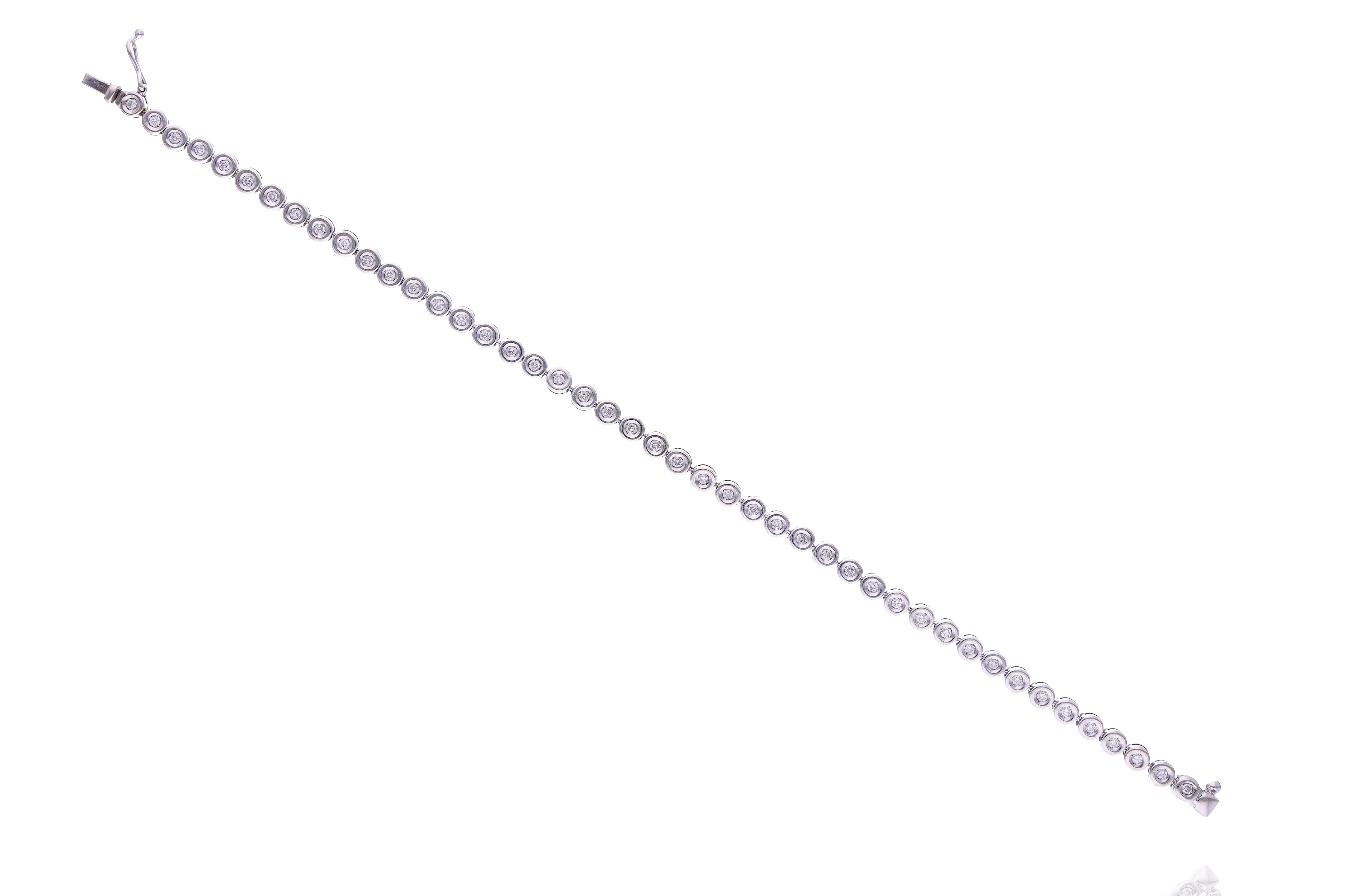 Bracciale con diamanti, realizzato in oro bianco 750, diamanti taglio brillante, ct 0,70 totali circa, colore I-K, purezza VS-SI, lunghezza 19,5 cm, difetti - Grammi 11,00