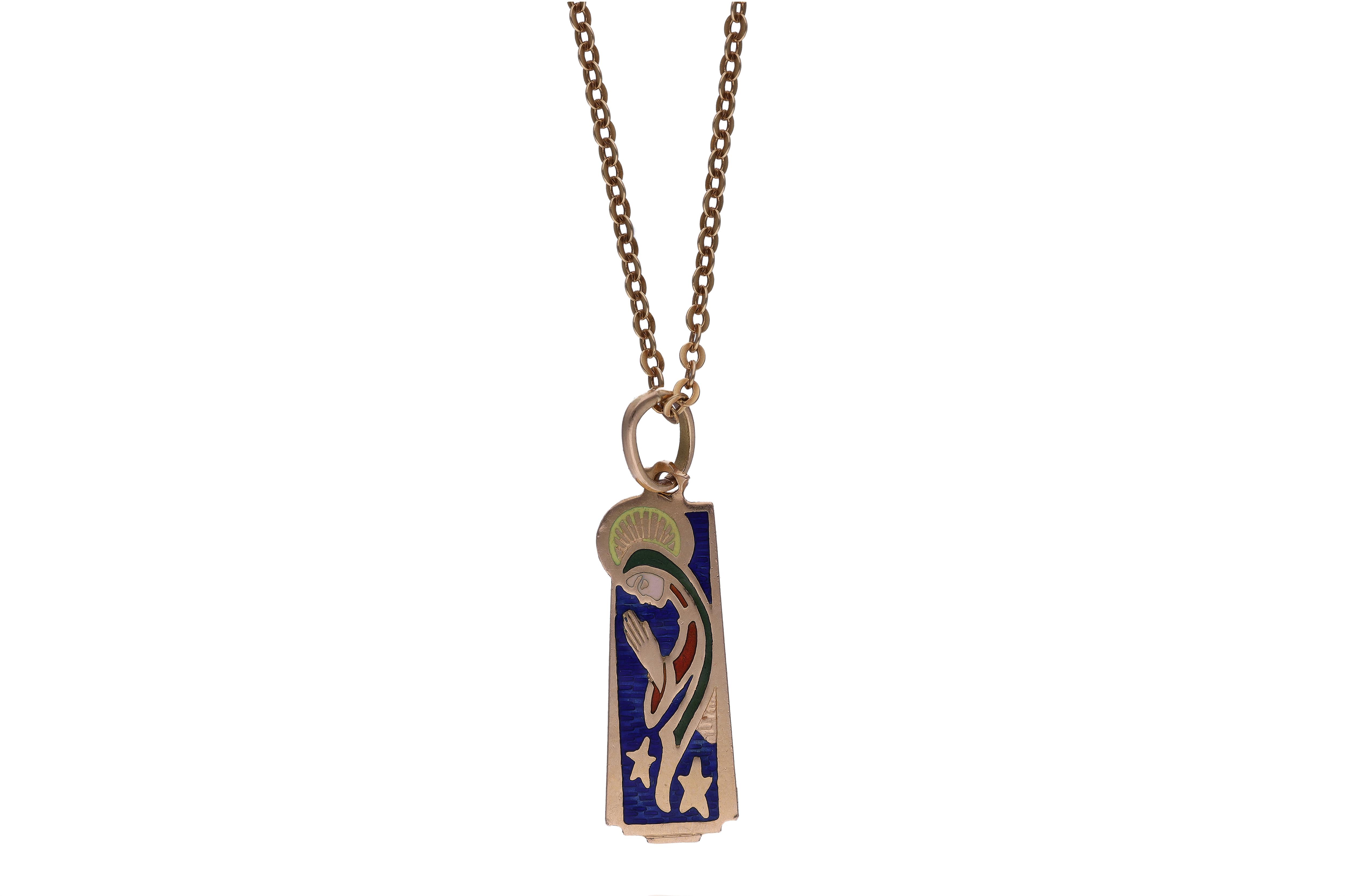 Collana con ciondolo, realizzato in oro giallo 750 e parte smaltata, lunghezza 52 cm, difetti - Grammi 9,60